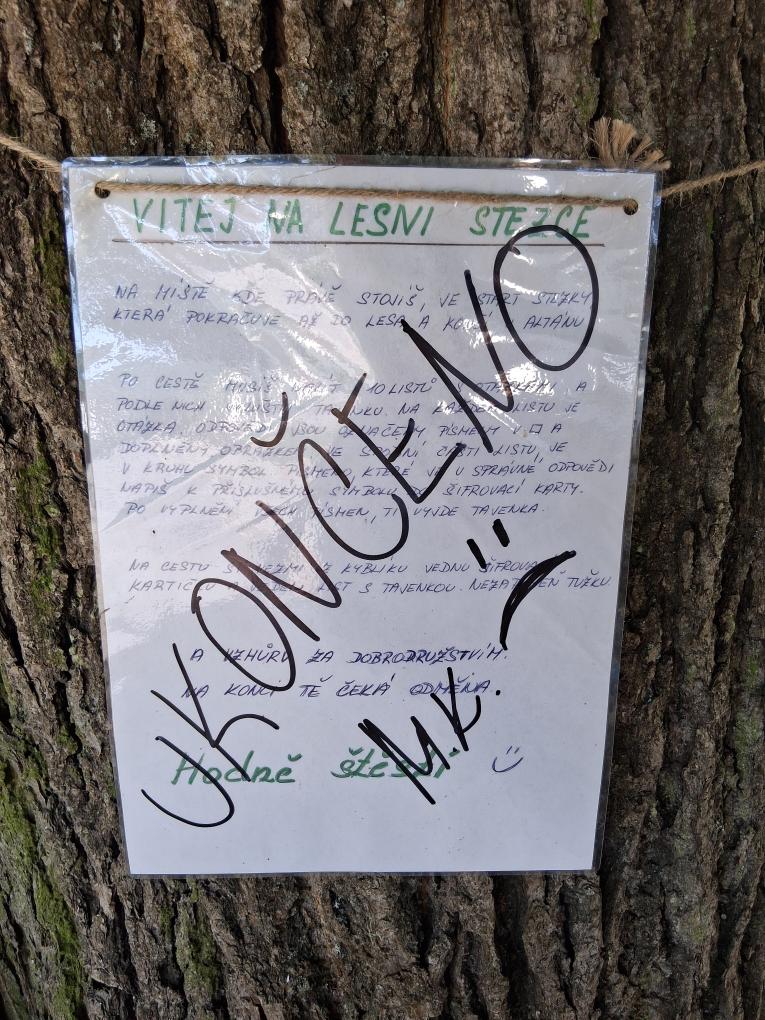 Není to poprvé, co tento vandal řádí v naší obci. Útočí zejména na tvorbu dětí a pro děti. Když se přesvědčí, že ho nikdo nevidí, hrdinně rozkope dětem jejich lesní domečky, sluníčko z šišek nebo rozstříhá tabulky naučné stezky.